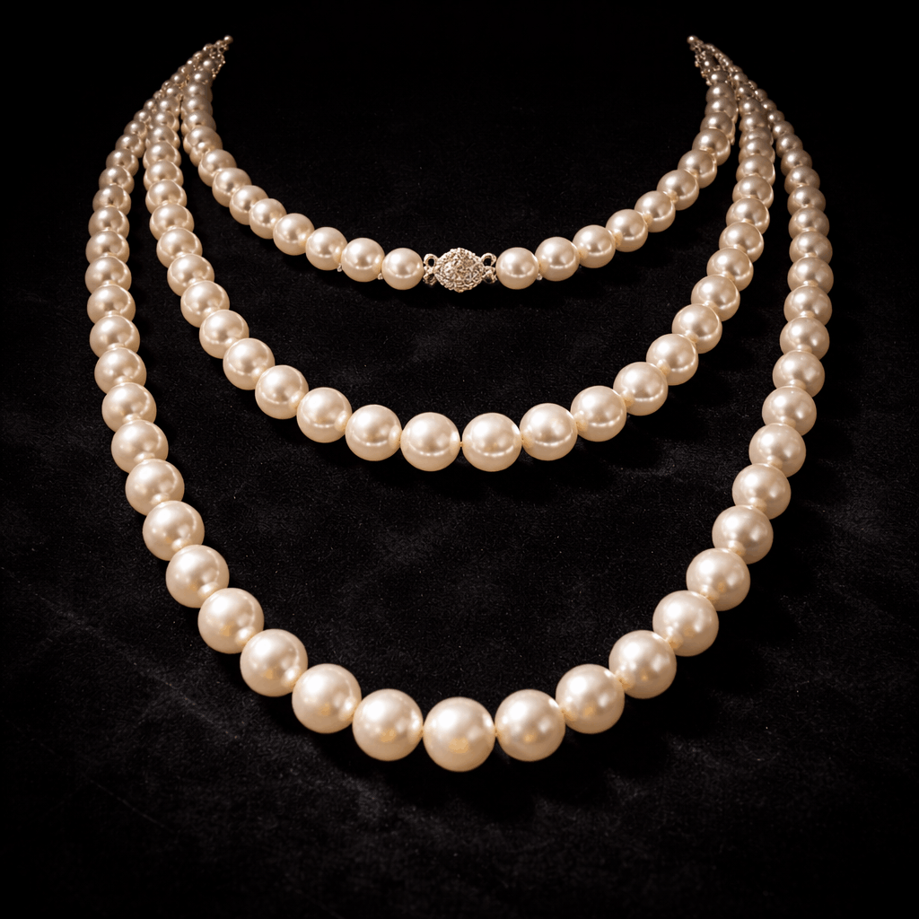 Agora, você não precisa das três para começar. Mesmo apenas dois fios com comprimentos claramente diferentes — um choker combinado com uma gota pendant mais longa — já captura lindamente a tendência de colares de pérolas em camadas. Além disso, começar com duas camadas primeiro é realmente a maneira mais fácil de se acostumar com o look antes de adicionar uma terceira. Então trate como uma progressão. Não como um compromisso tudo ou nada.